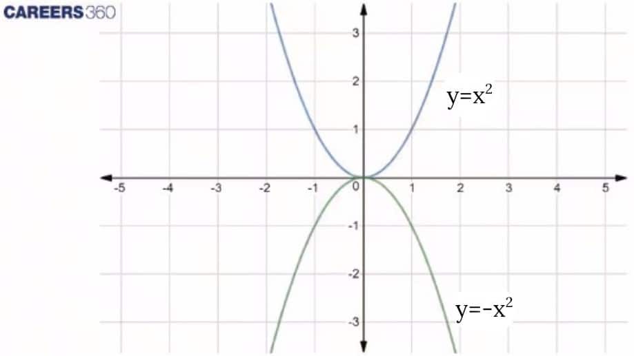 When $a$ is negative, the graph of the quadratic equation opens downwards. The parabola has a maximum point. Again, the smaller the value of $a$, the wider the parabola.
