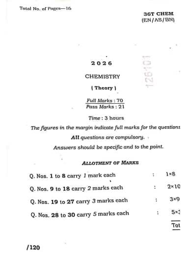 The Assam HS Chemistry Question Paper 2026 PDF will be provided here after the exam.