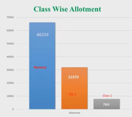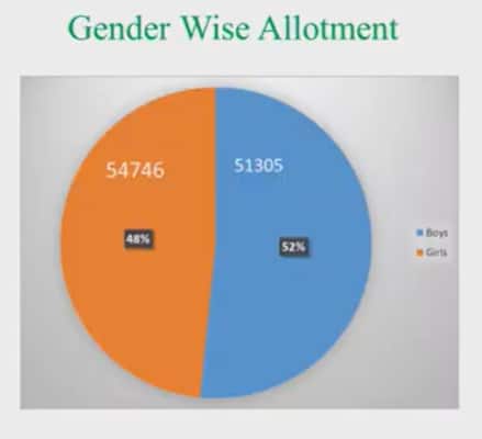 इसमें 54746 छात्राओं को और 51305 छात्रों को स्कूल आवंटित किया गया है। इसमें 48 प्रतिशत छात्राओं और 52 प्रतिशत छात्रों को सीट आवंटन किया गया है।