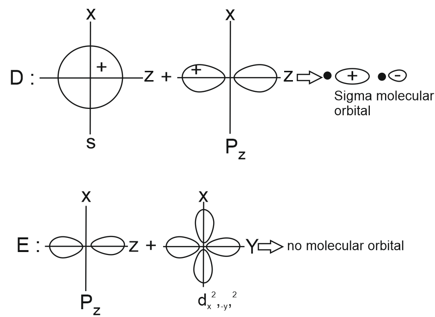 The correct combination is 2 s and $2 \mathrm{p}$, as these orbitals can form molecular orbitals in homonuclear diatomic molecules with the internuclear axis along the z-direction. This is because both orbitals have the same symmetry along the z-axis, allowing effective overlap and formation of a $\sigma$-type molecular orbital. Additionally, the energy difference between the 2 s and 2 p orbitals is relatively small especially in lighter atoms, making their mixing energetically feasible. This small energy gap enables efficient interaction, leading to noticeable s-p mixing in their molecular orbital diagrams.