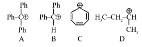 C is aromatic due to $\oplus \mathrm{ve}$ charge hence it is most stable
