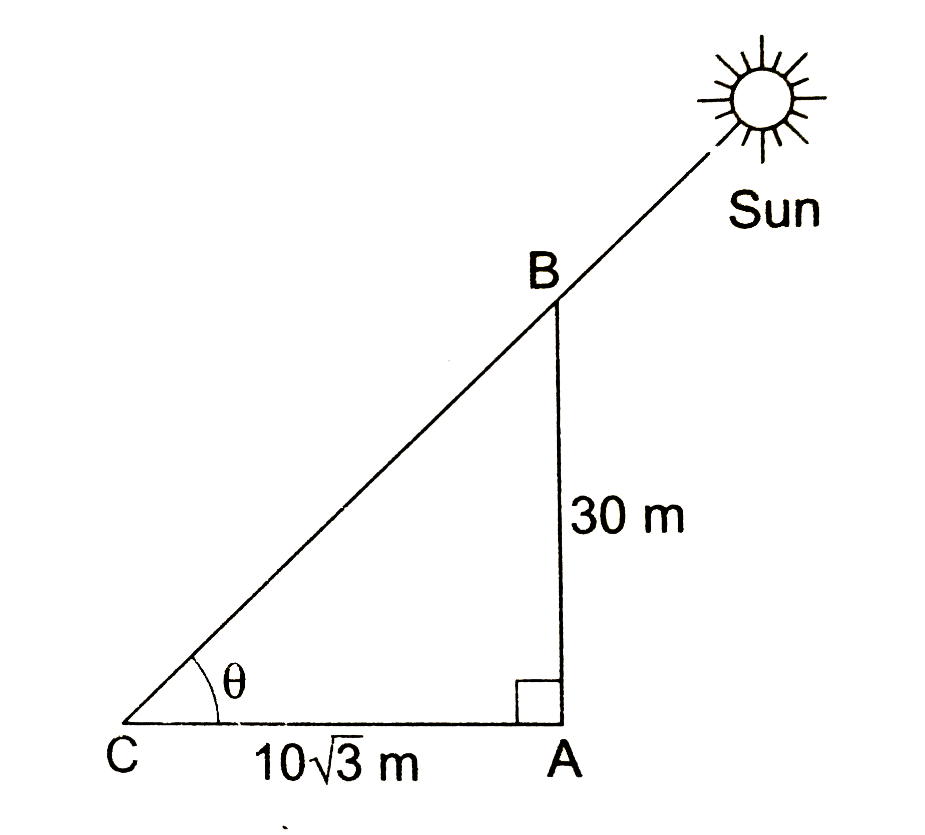 The length of the shadow on the ground of a tall tree of height $30 \;m$ is $10 \sqrt{3} \mathrm{~m}$. What is the angle (in degrees) of elevation of the sun?