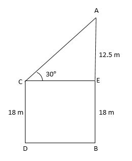 So, $\mathrm{AE}=30.5-18=12.5 \mathrm{~m}$