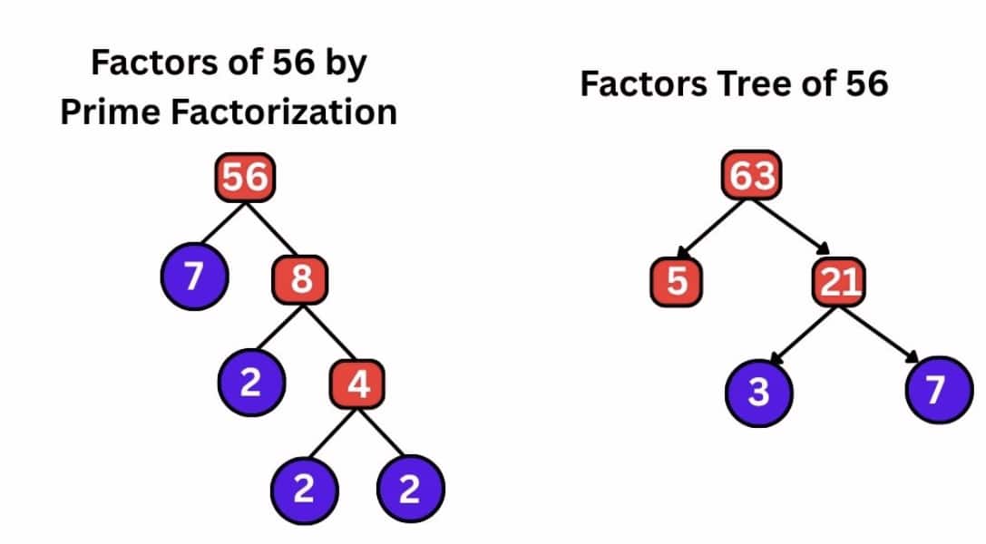 56 = 2 × 2 × 2 × 7. All the factors appearing here, 2 and 7, are prime numbers. So, we cannot divide them further.